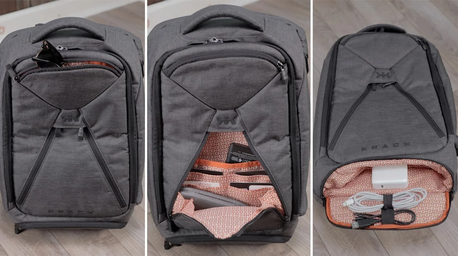 In order to achieve a more streamlined look, Knack has combined all of the smaller pockets in the Series 1 into one massive organizer compartment in the Series 2. Inside this compartment is where you will find all of the original organizer features such as a fleece lined pocket for glasses, cable loops, business card pockets and a variety of larger pockets for accessories like chargers, notebooks and wallets.